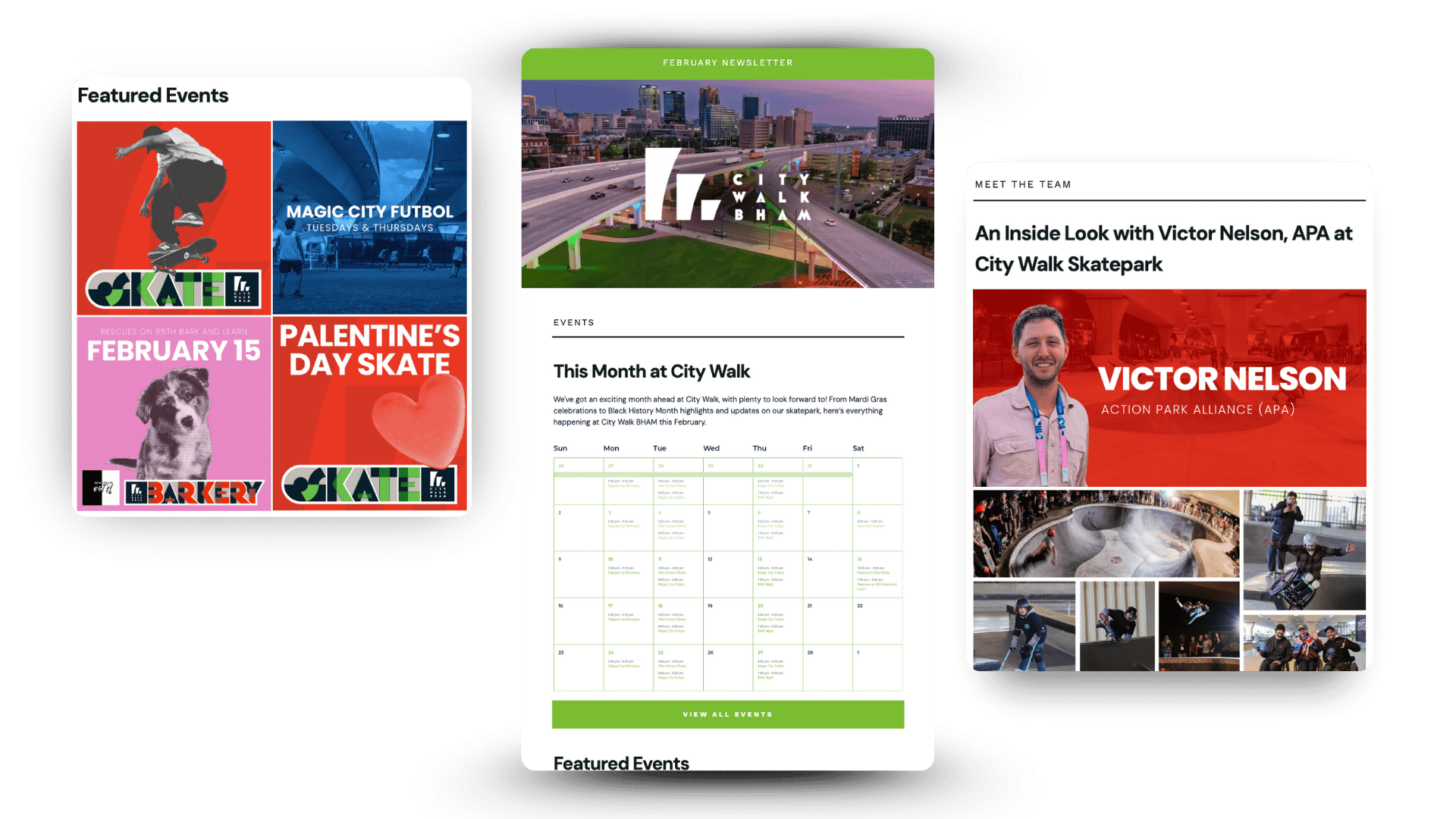 City Walk BHAM needed a refreshed website and communication platform that could match the energy of its downtown Birmingham destination—an ever-evolving space filled with recreation, art, and community events. The goal was to create a digital experience that reflects City Walk’s vibrant personality while keeping the community informed and engaged year-round.